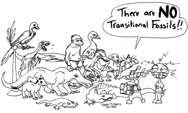 Với hơn 100 Triệu mẫu khảo cổ trên đất liền và ngoài biển sâu (Riêng Viện Smithsonian giữ 40 triệu mẫu), không ai tìm được bất cứ mẫu Hoá Thạch nào về các sinh vật ĐANG BIẾN DẠNG (mutate) để trở thành một sinh vật khác. Tất cả hoá thạch tìm được đều là sinh vật nguyên thuỷ: sinh vật nào ra sinh vật đó, cây nào ra cây đó; không có một phần con này đang đổi dạng thành một phần con kia. Ngay cả Darwin cũng phải thú nhận điều này trong chính cuốn sách của ông: “ Theo như thuyết này, thì đã có vô số hiện hữu của các dạng sinh vật đang biến đổi. Tại sao chúng ta không tìm được chúng nằm dưới các lớp đá của trái đất?... mà như chúng ta thấy, các sinh vật đã rất rõ ràng hình thù từng giống riêng?” (Origin of Species,1866, trang 143).