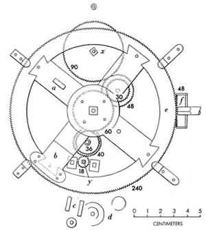 Một cổ vật có 2000 năm tuổi đã được tìm thấy trong một chiếc tàu bị đắm gần Hy Lạp vào năm 1901. Nó được gọi là Cơ Khí của Antikythera (tên của đảo). Vật dụng này làm bằng Đồng, bao gồm 30 bánh xe răng cưa và những cây kim, được bọc bởi một hộp bằng gỗ. Hiện nó đang được lưu giữ tại Bảo Tàng Viện Khảo Cổ Athen (Hy Lạp).