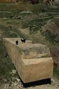 Đối với chúng ta ngày nay, xây một Cao Ốc không có gì khó khăn lắm, bởi vì tất cả vật liệu đều được dùng xi-măng rồi đúc thành từng khối rồi ráp lại với nhau. Nhưng có một việc mà ngay hôm nay chúng ta không thể làm được: xẻ núi, xẻ đá thành từng phiến khổng lồ. Hình bên trái là một công trình di tích dở dang, nay nó trở thành địa điểm du lịch.