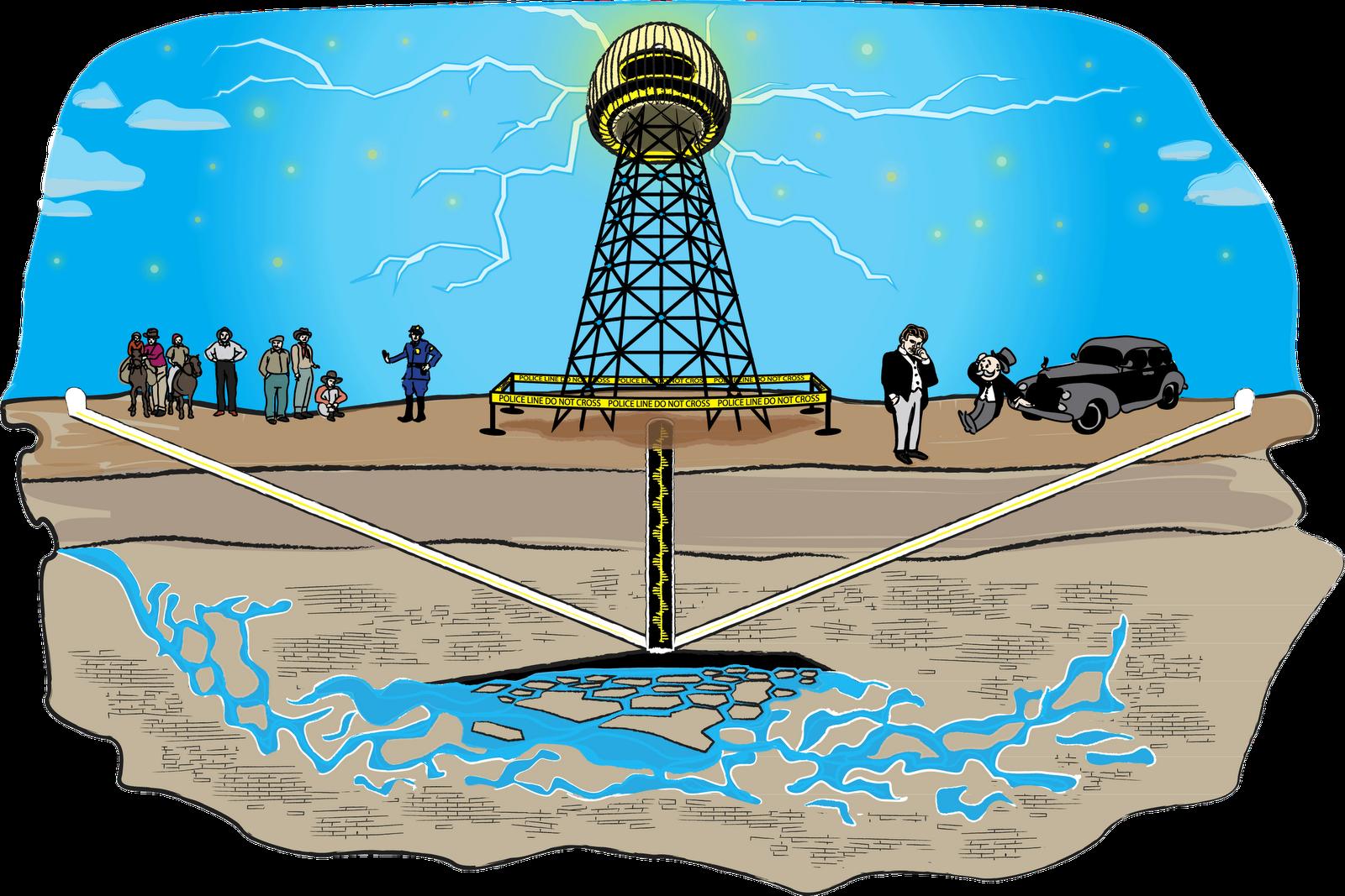 Đây là cái tôi muốn nói, đó là Tesla đã xây một Tháp Điện phát ra năng lượng lấy từ mạch nước ngầm dưới đất và phóng xạ của mặt Trời: một nguồn điện sạch y như Giza. Nó ứng dụng nguyên tắc Điện Từ Trường (electromagnectic) như Giza: tụ điện thiên nhiên rồi toả điện không dây. Nó được gọi là Tesla Coil . Tháp này có tên là Tesla Tower (hình). Cái Tháp này ứng dụng tương tự như KTT Giza và Obelisk.